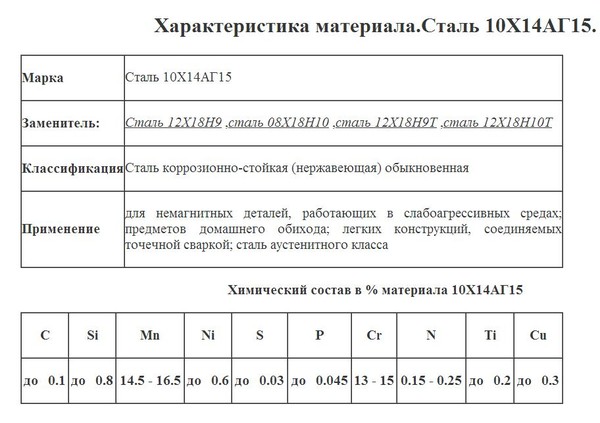 | Россия (ГОСТ) | 10Х14Г14Н4Т, Х14Г14Н3Т |