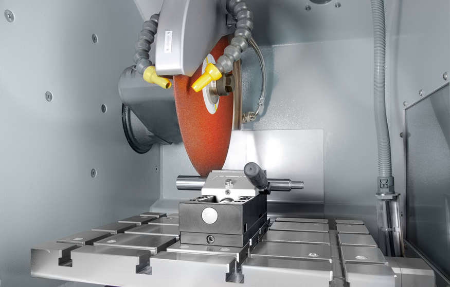 Абразивный отрезной станок оснащен большим отсеком для резки и подвижным Т-образным рабочим столом.