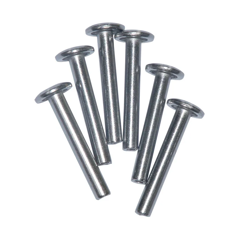 Заклёпка алюминиевая вытяжная со стандартным буртиком AL/AL — алюминий/ алюминий, размеры от 2.4 х 4 мм до 6.4 х 45 мм.