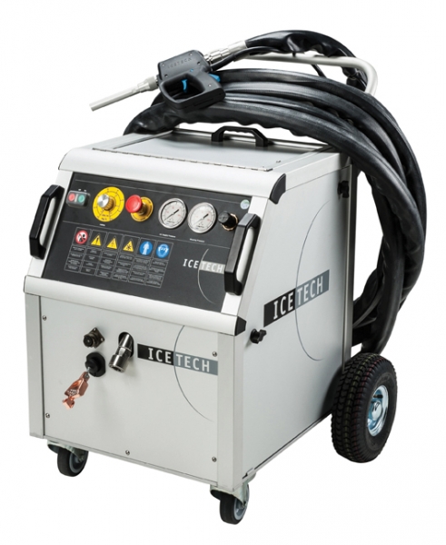Аппарат для чистки сухим льдом при помощи сжатого воздуха разгоняет гранулы размером до 2,5 мм до скорости более 150 м/с. Низкая температура (–79 °C) обеспечивает замерзание и растрескивание слоя грязи, а высокая скорость гранул сухого льда – ее удаление с поверхности. Этот метод чистки позволяет эффективно устранять практически любые загрязнения без повреждения очищаемых объектов.
