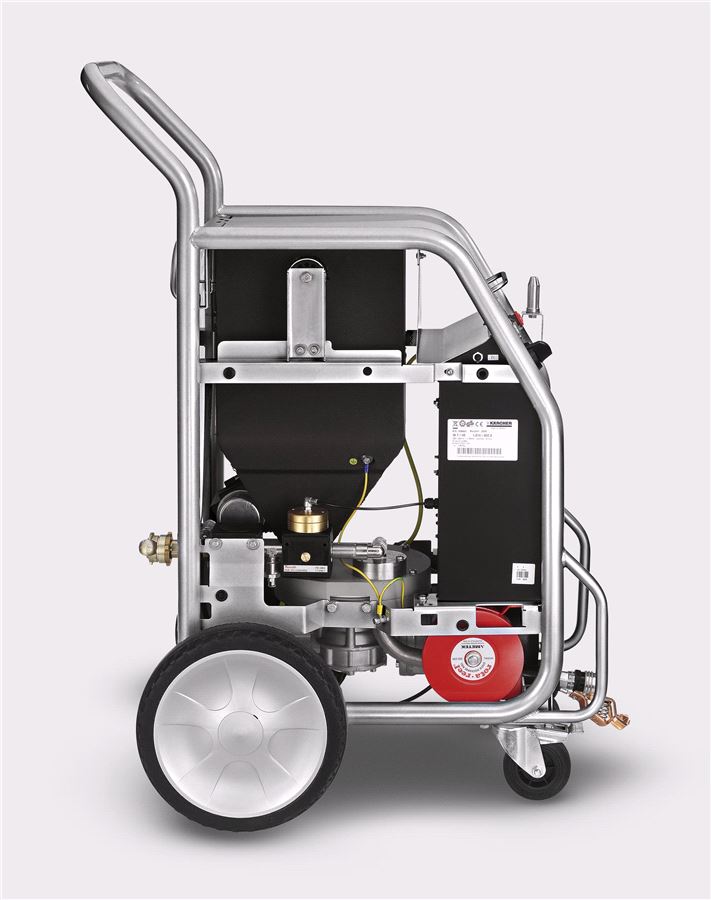 Интеллектуальные вспомогательные системы обеспечивают контроль важнейших параметров аппарата, гарантируя работу с необходимым минимальным давлением струи, допустимой температурой двигателя дозатора гранул и свободным отведением углекислого газа через выпускной шланг.