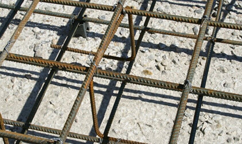 Железобетон. Композитный материал, в котором бетон обеспечивает прочность материала на сжатие, а армирование в виде дополнительного встроенного материала обеспечивает прочность на растяжение и/или пластичность.