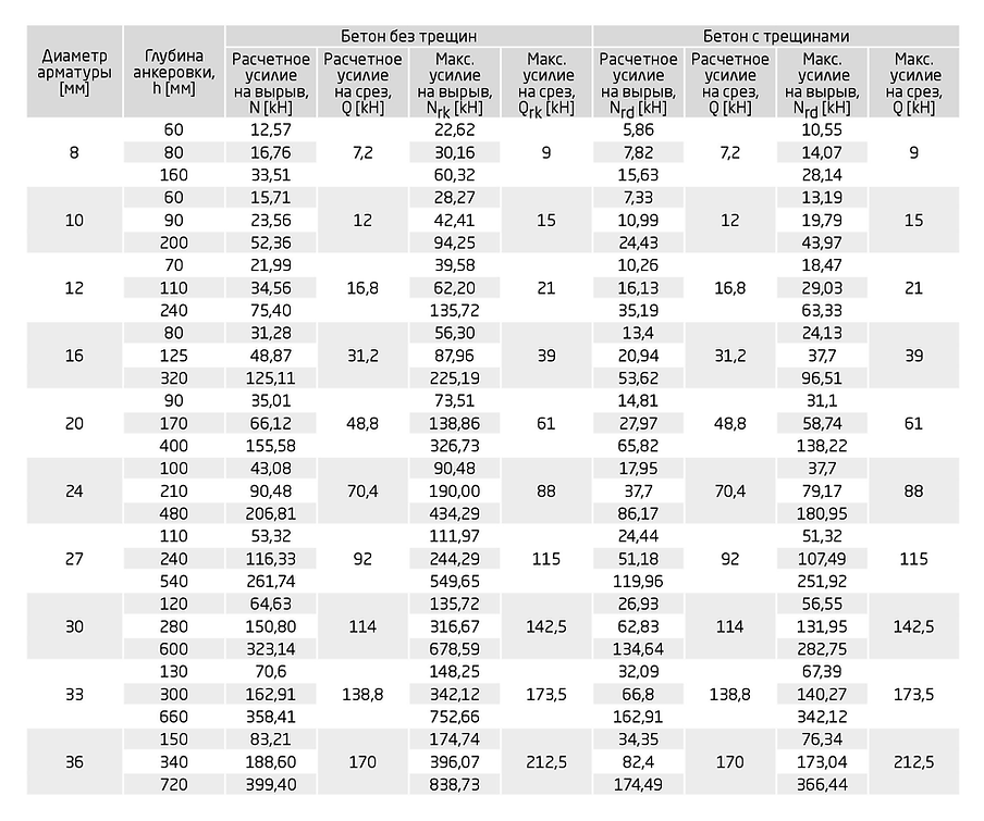 Предполагается бетон нормальной массы и отсутствие поперечной арматуры. | |||||||||