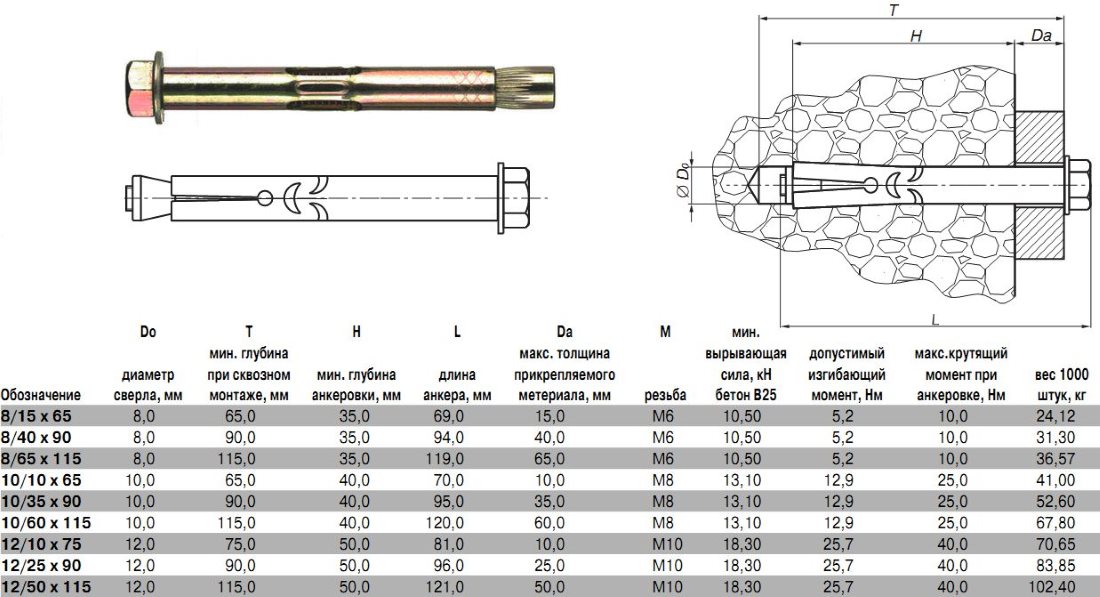Размеры анкерных болтов по бетону