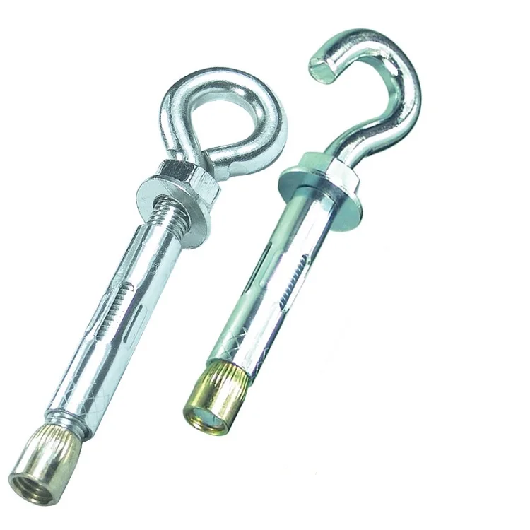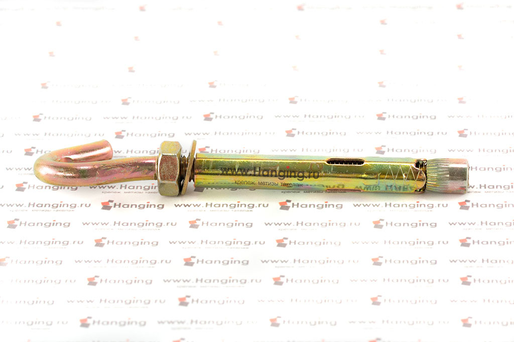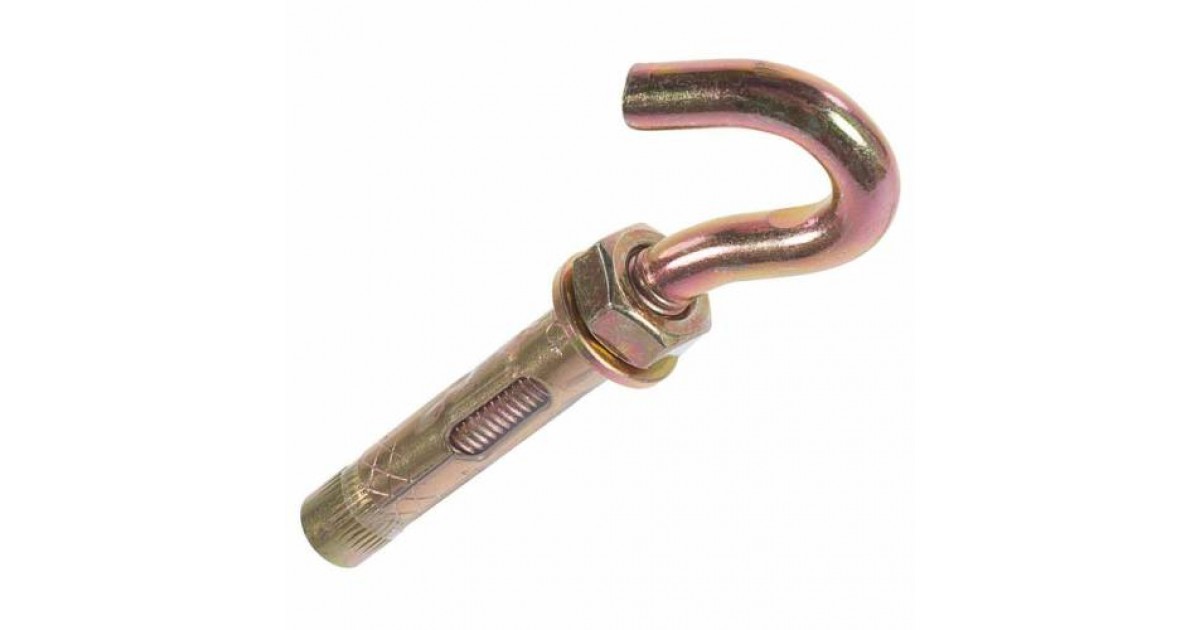 Близок к оформлению и принципу действия анкерный болт с крюком (рис 3). Анкер действует путем расширения распорки, только его продолжение состоит из крюка. Анкер закрепляется за счет вращения крюка, а гайка зафиксирует положение.