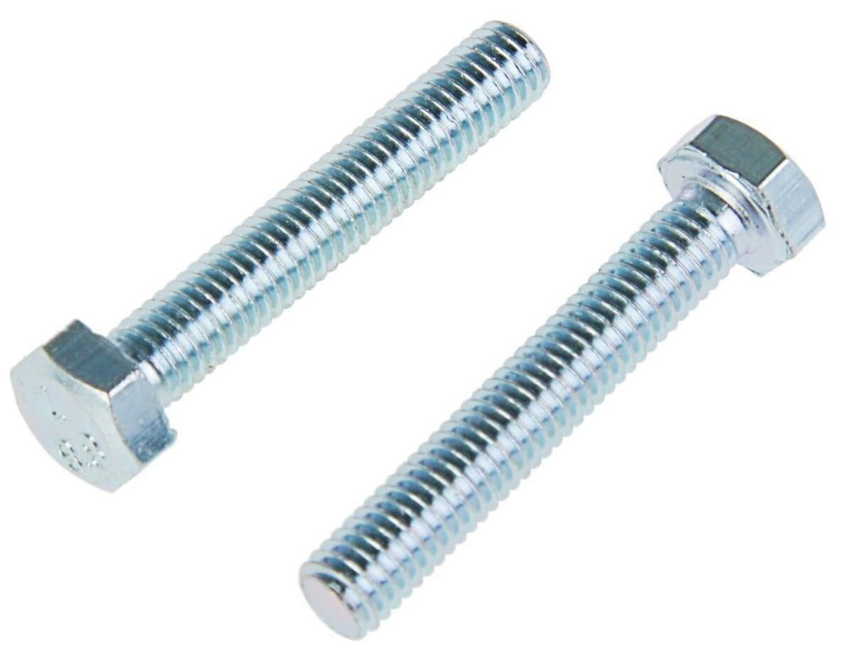 Болт DIN 933, имеющий метрическую резьбу, помещается в один элемент конструкции и осуществляет фиксацию другого путем завинчивания гайки стандарта DIN 934 тоже с метрической, но с внутренней резьбой.
