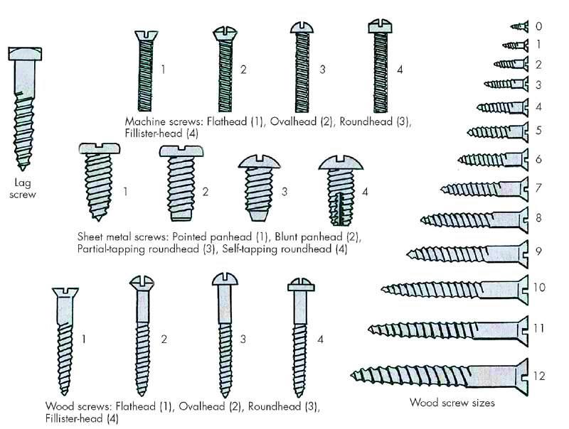 Винт для листового металла (саморезы, винты для нарезки резьбы) — Имеет острые нити, которые врезаются в такой материал, как листовой металл, пластик или дерево. Иногда они имеют насечки на конце, чтобы облегчить удаление стружки во время нарезания резьбы. Вал обычно имеет резьбу до головки. Шурупы для листового металла отлично подходят для крепления металлической фурнитуры к дереву, поскольку вал с полной резьбой обеспечивает хорошую фиксацию в древесине.