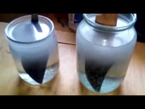 Раствор лучше делать с подогревом соли до ее расплавления с добавлением денатурата после снятия с огня емкости (желательно, чтобы это была химическая фарфоровая чашечка). Составом обмазываем стальное изделие и нагреваем над огнем, положив на лист жести. Следующий сложный рецепт подходит для оксидирования металла в серый цвет. Данный процесс, при значительной продолжительности, может перейти в холодное чернение обычной и нержавеющей стали, которое проще всего осуществлять в домашних условиях.