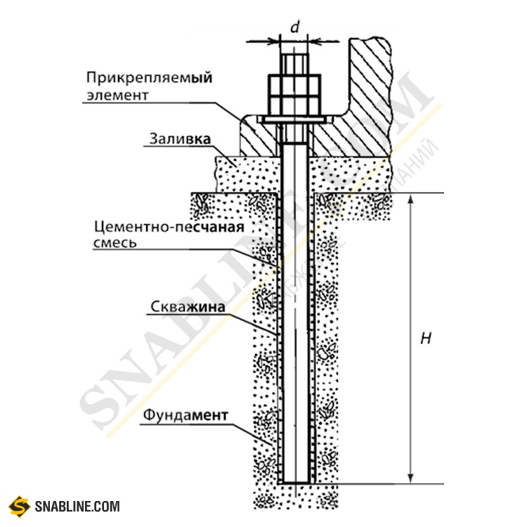 Пример использования болта анкерного ГОСТ 24379.1, типа 1, исполнения 1: