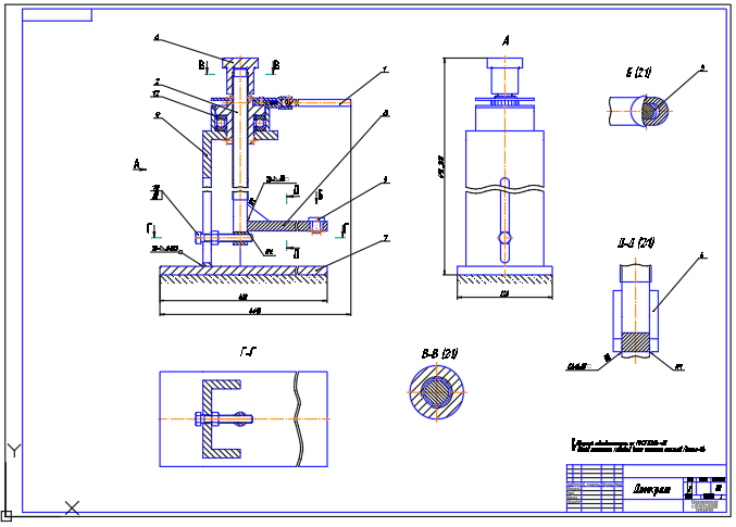Все значимые размеры обязательно заносятся в чертеж. При этом габариты должны приводиться с учетом размеров домкрата, обрабатываемых изделий, а также металлопроката, который будет применяться для сборки гидравлического пресса.