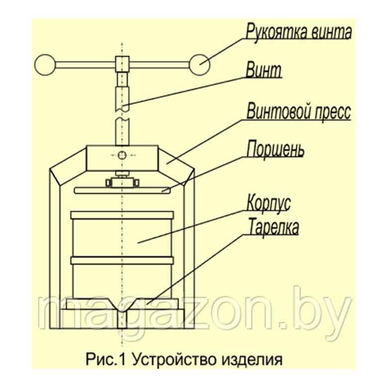 Давление в большой емкости обычно создается при помощи встроенного либо отдельного насоса. Самый легкий в исполнении вариант – пресс, собранный на базе бутылочного домкрата с предусмотренным ручным насосом.
