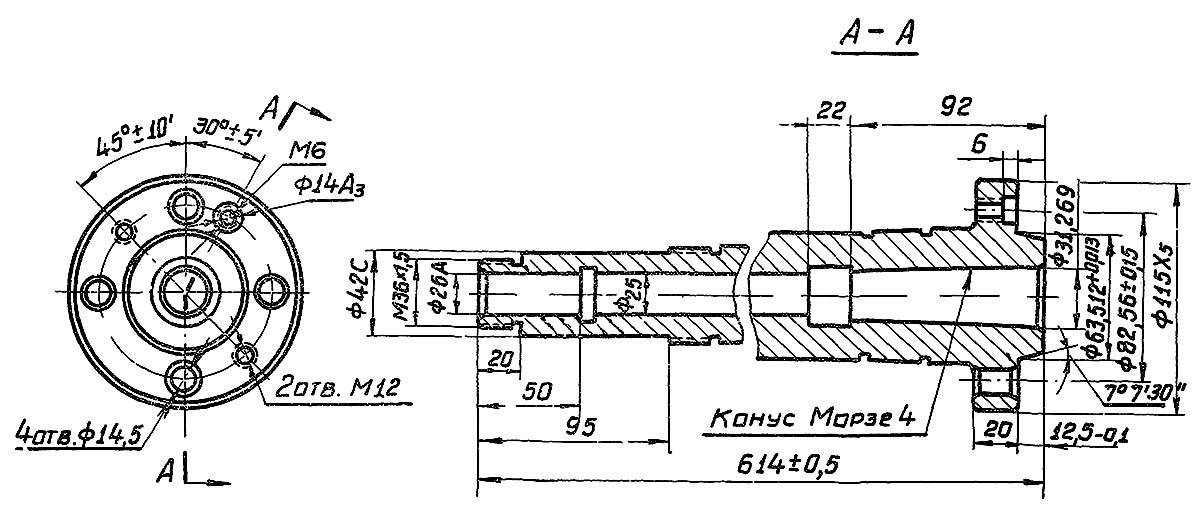 Чертеж шпинделя токарно-винторезного станка 1К62. Смотреть в увеличенном масштабе