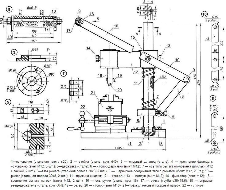 - Сделать компоновку и предполагаемый перечень деталей на самодельный настольный станочек для изготовления своими руками.