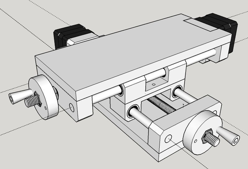 Конструкция подшипникового узла ходового винта описана в вышеупомянутой статье. Она оказалась удачной, поэтому в новом станке сделаем точно также.