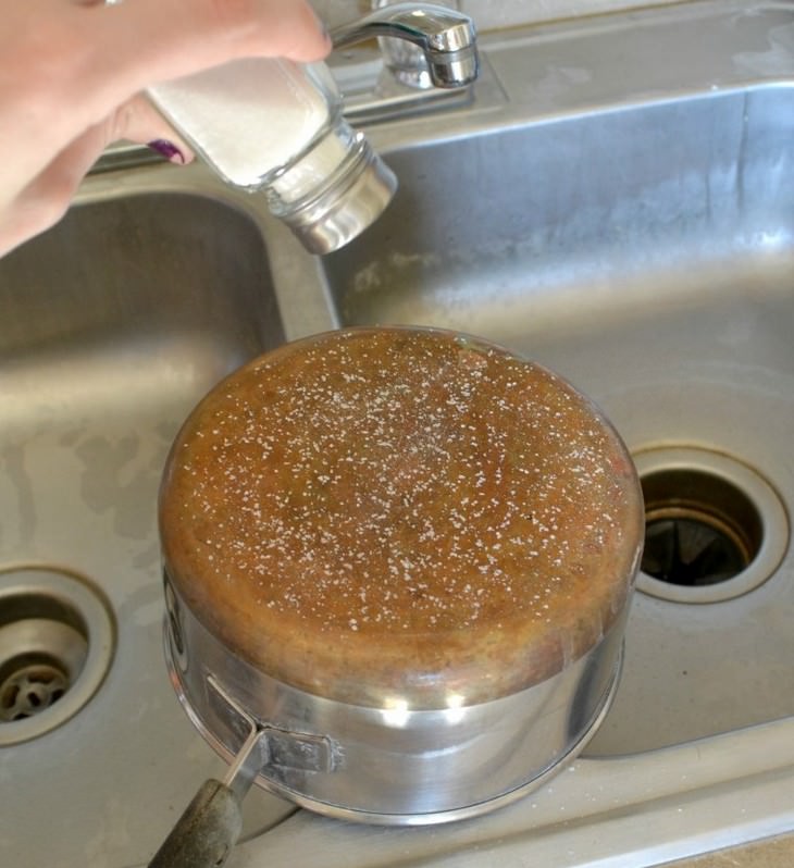 Для полировки и чистки медных кастрюль также можно использовать лимон. Если смешать ее с крупной солью, получится очень сильный домашний очиститель меди. Изготовлено из всех натуральных домашних средств.