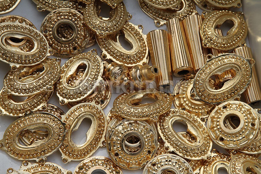 Поскольку в их составе медь и цинк, изделия желтые. Стальной цвет им придают с помощью гальванизации, то есть напыления на поверхность других металлов серебристых оттенков.