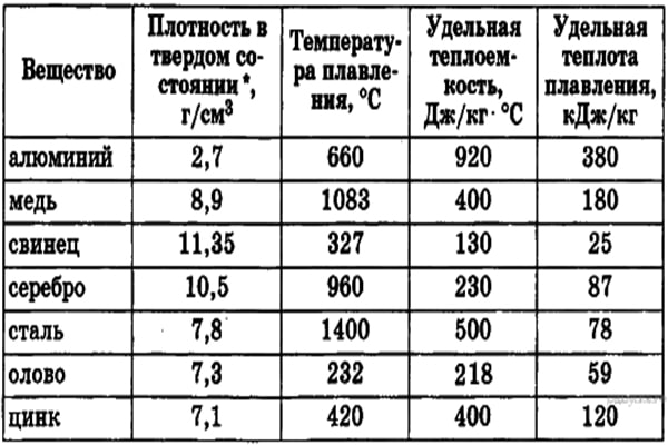 Используя §4 учебника физики для 8 класса, представим результаты в виде таблицы: