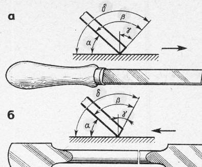 Движения вперед нужно делать с уверенным нажимом, чтобы срезать лишний металл. Контролируя степень нажатия, Вы можете контролировать глубину резки. Назад инструмент следует возвращать спокойно, без нажима. Оптимальный ход инструмента составляет 2-3 сантиметра, а по мере выравнивания поверхности металла ход следует уменьшить до 0,5-1 сантиметра.