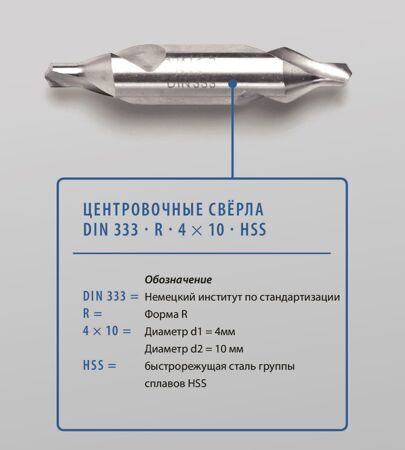 - Плоская форма с углом 60 градусов, используемая для выполнения центральных отверстий в заготовках, требующих прецизионного сверления или механической обработки между центрами Также используется в качестве начальных отверстий для предотвращения «шатания» сверла