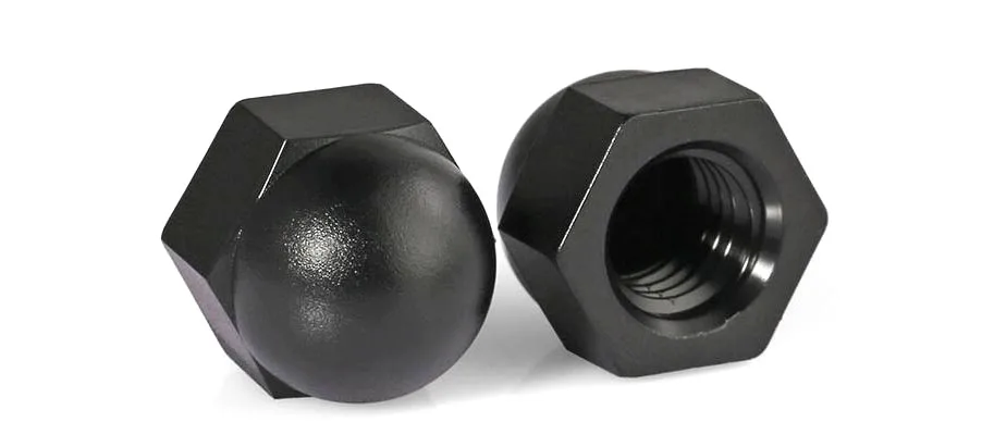 Каждый пластиковый колпачок имеет простую конструкцию: это цельнолитая деталь с полусферической верхней частью и цилиндрической нижней, внутри которой отформован шестигранник для монтажа на головку болта или гайку.