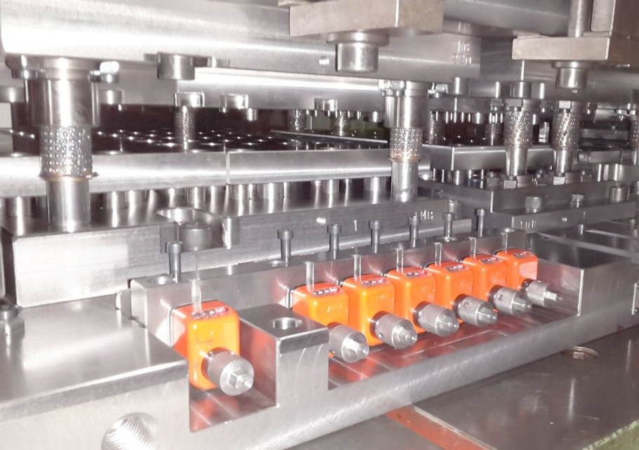 Испытания показали, что производительность полуавтомата составляет около 1000 дет./час, производительность известного устройства — 180 дет./час.