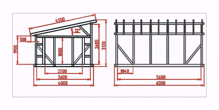 Чертежи необходимы, если в помещении также будут храниться инструменты и другие вещи. Скорее всего речь пойдет уже о сарае, который совмещен с дровником. Проекты чертежей с размерами понадобится для определения площади, запас заготовленных дров может существенно отличаться.