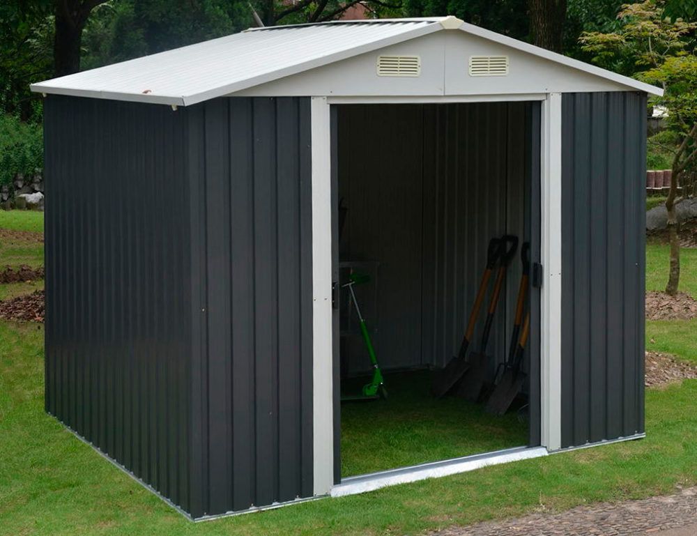 Одна из лучших конструкций деревянного сарая – это пергола с односкатной крышей и без входной двери. Каркас состоит из бруса, стены обшиты фанерой для предотвращения попадания дождя. Крыша металлическая. Примерный размер конструкции 2,5×1,4 м.