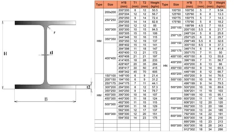 В таблице показан теоретический вес горячекатаных балок двутавровый колонных, серии К.