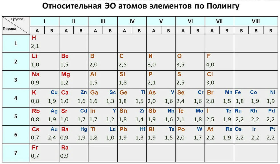Электроотрицательность меди: Таблица электроотрицательности химических элементов с примерами ряда