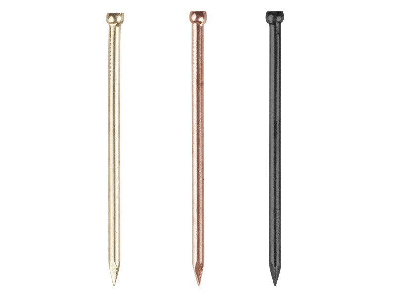 - Медное покрытие позволяет подобрать гвоздь под цвет отделочных материалов, а также обеспечивает надежную зашиту от коррозии,