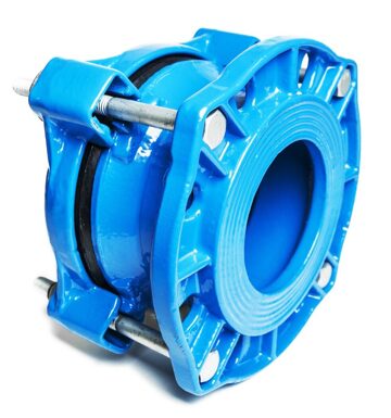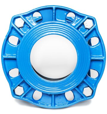 При стыковке труб с бесфланцевыми торцами или подключении фитинга к запорной арматуре или другому устройству прибегают к установке фланцевых адаптеров. Конструкция включает: