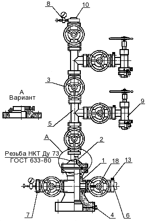 Две оставшиеся схемы из стандарта ГОСТ 13846 относятся к трубной обвязке, которая расположена ниже фонтанной елки. Вариабельность этого узла обусловлена следующими факторами: