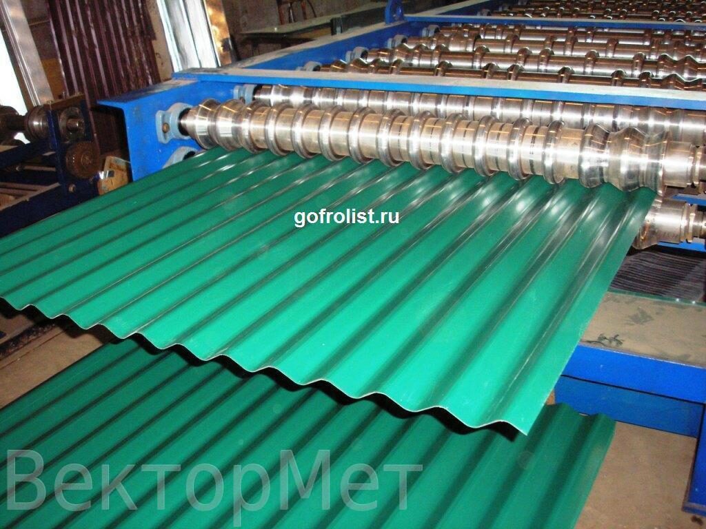 Производят гофролист из рулонной или листовой оцинкованной стали, используя холоднокатаный способ. Плоский исходный материал пропускают через современные прокатные линии, в результате чего лист приобретает волнообразную форму гофры. Стандартная высота волны составляет 0,15 – 0,18 мм, толщина металлического изделия варьируется в пределах 0,35 – 1,0 мм. Именно показатель толщины гофрированного стального листа влияет на жесткость изделия, определяет параметры сопротивления механическим воздействиям в процессе транспортирования, монтажа, эксплуатации.