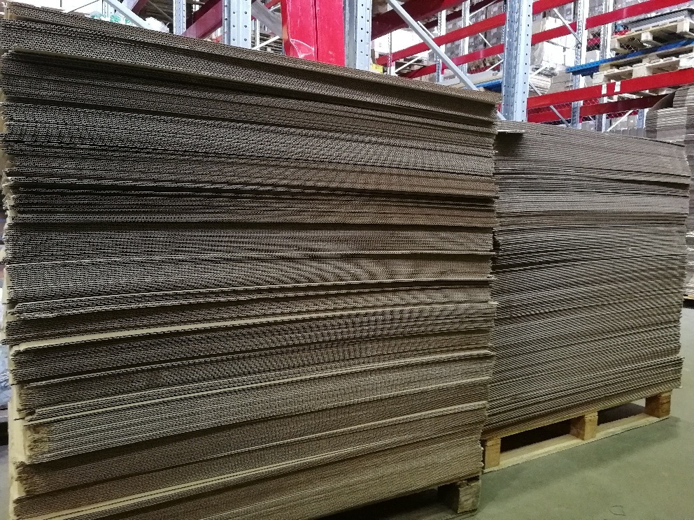 Nahaufnahme einer Aluminiumwand aus Wellblech auf einem Lager.