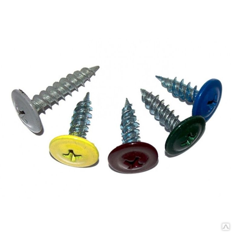 Окрашеные кровельные саморезы используют в сочетании с профлистом с полимерным покрытием, их классические оцинкованные аналоги комбинируют со всеми мягкими материалами, листовым металлом с гладкой поверхностью. Вворачивать саморезы с наконечником-сверлом необходимо специальным инструментом.
