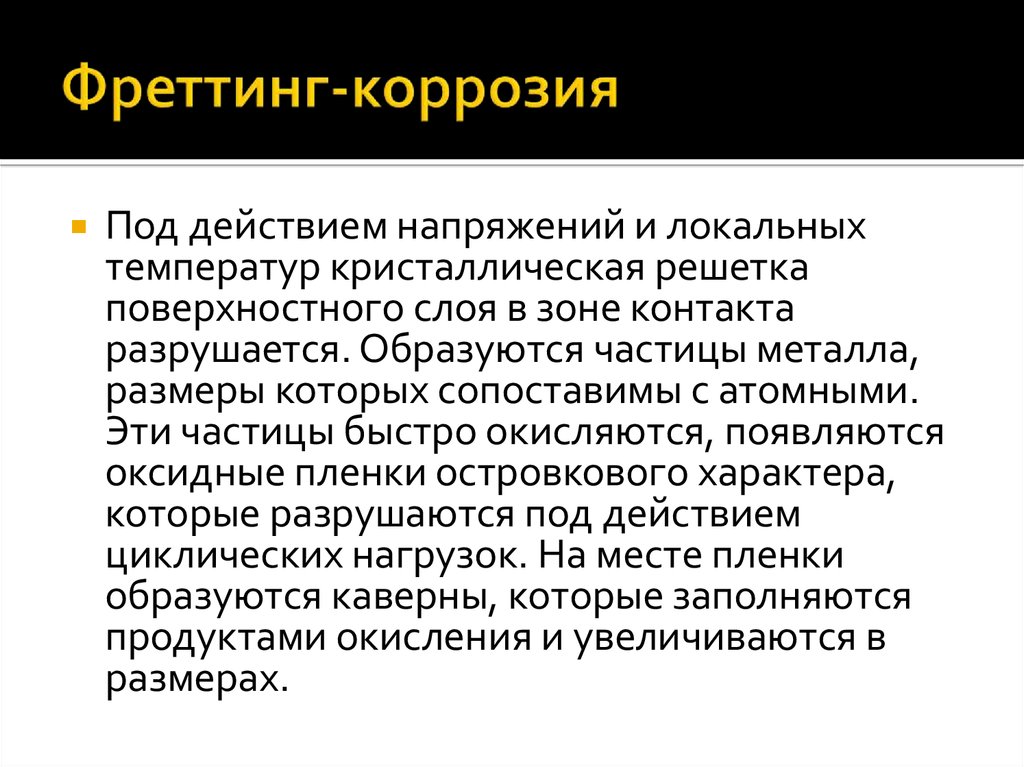 Совмещение механического износа и воздействия коррозионно активной среды и дает нам фреттинг-коррозию.