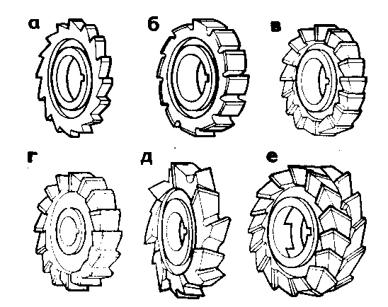 Кроме того, различают дисковые фрезы с напайными и вставными зубьями. Цельными чаще всего делают фрезы шлицевые. Вставные ножи характерны для двусторонних или трёхсторонних фрез.