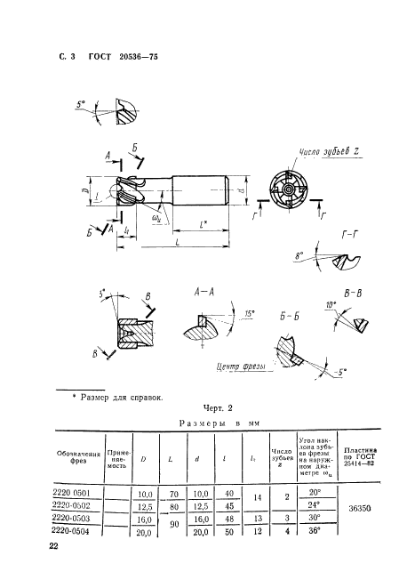2. Номера пластин по ГОСТ 2209-82. В качестве режущей части фрез должны применяться винтовые пластины из твердого сплава марки T5K10; T14K8; T15K6; T15K6; BK6 и BK8 по ГОСТ3882-74.