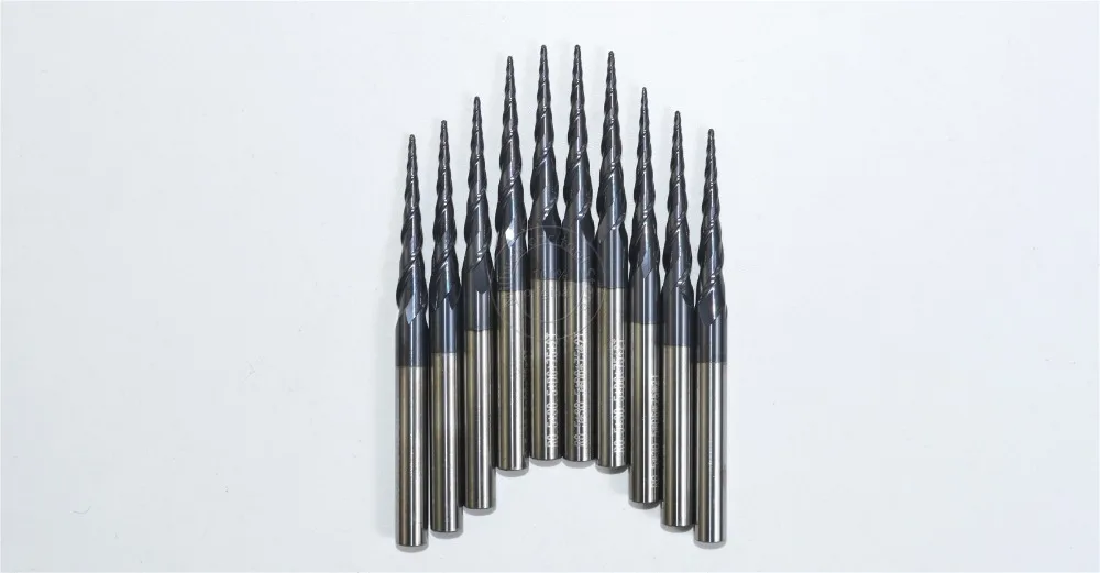 Такой фрезой обрабатываются глубокие рельефы (черновая обработка отсутствует). Высокой прочности фрезы, имеющей маленький диаметр кончика, способствует форма конуса.