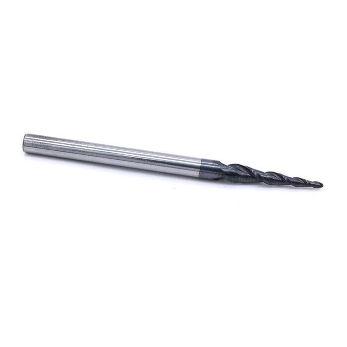Коническая шаровая твердосплавная двухзаходная фреза, твердость которой составляет 92 HRC.