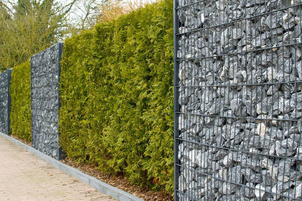 растительность свободно прорастает через ячейки плетеной или сварной сетки, создавая интересный эффект естественности и натуральности конструкции. Более того, растительность только укрепляет конструкцию; -
