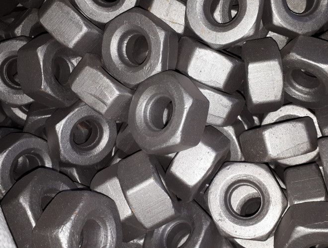 Особенности этой технологии связаны именно с типом сырья, используемого для изготовления крепежа данного вида. В частности, штамповку гаек из легированных, а также высокоуглеродистых сплавов рекомендуется выполнять, предварительно нагрев заготовки так, чтобы они стали теплыми или полугорячими. Кроме того, нужно обеспечить эффективную работу смазки.