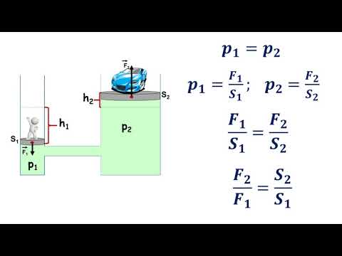 Закон Паскаля — это теория, которая утверждает, что давление (P) в замкнутой жидкости, вызванное силой (F1), на площадь (A1) передается без уменьшения, вызывая силу (F2), на площадь (A2 ). Этот закон можно применить, чтобы увеличить небольшую силу на отношение площадей, чтобы получить большую силу — F2 = F1 (А2/А1).