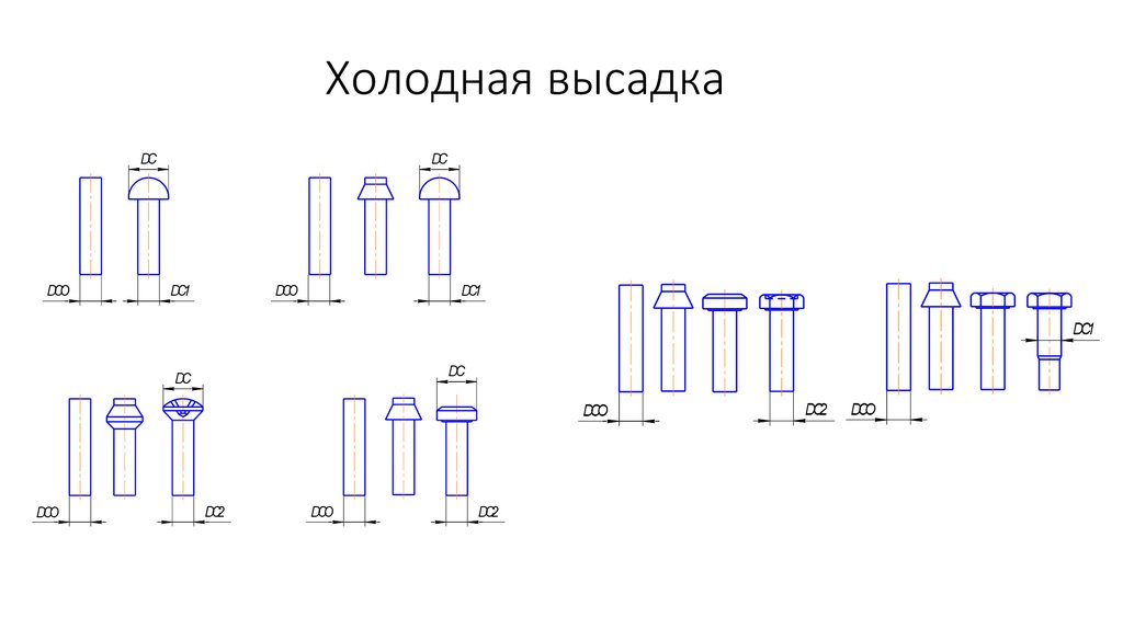 Горячая высадка осуществляется на горизонтально-ковочных машинах.