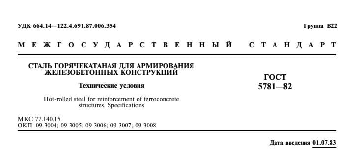 ГОСТ 5781-75 Сталь горячекатаная для армирования железобетонных конструкций