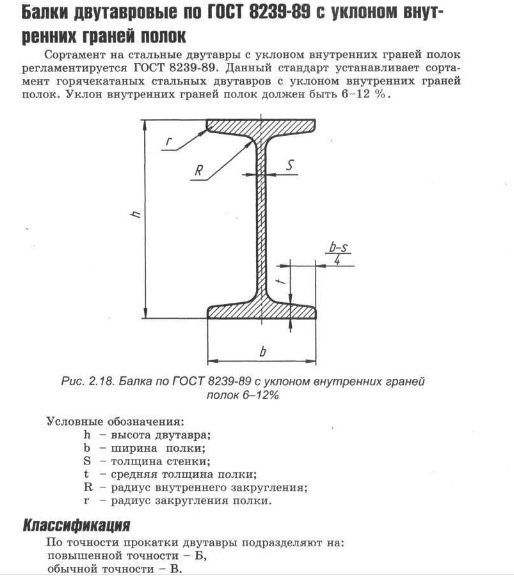 Двутавровые профили Спецификация ГОСТ 8239-89, Двутавровые стальные балки с наклонной полкой