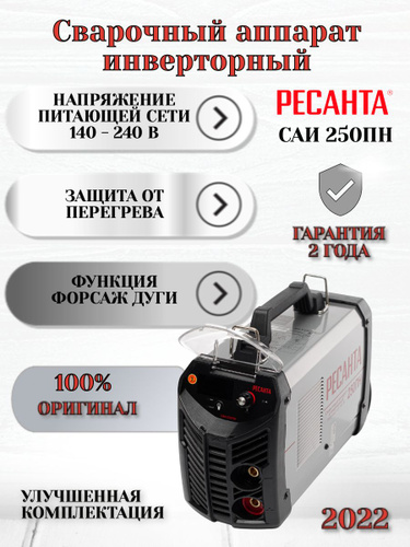 Характеристики сварочный инвертор Ресанта САИ 250 ПН