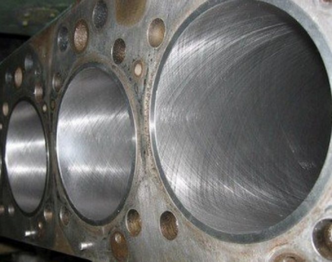 На фото выше правильно отхонингованнные цилиндры.Левый цилиндр -плосковершинное хонингование,правый цилиндр-плосковершинное хонингование с крацеванием.