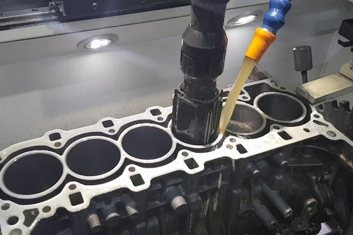 Инструмент – хонинговальные бруски и щетки – здесь импортные. Смазочно-охлаждающая жидкость (СОЖ) высшего качества. Она омывает инструмент и блок во время операции, тут же фильтруется и вновь подается в рабочую зону.