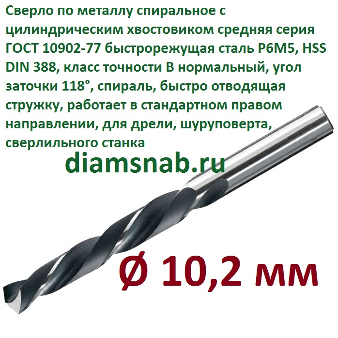 Самый распространенный тип сверла по стали и другим металлам. До того, как была изобретена быстрорежущая сталь, они использовали сверла из углеродистой стали, чтобы пытаться сверлить металлы, но это оказалось практически бесполезным. На рисунке показано сверло с коническим хвостовиком Морзе из быстрорежущей стали.